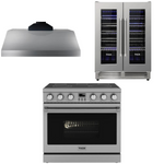 THOR Contemporary Package - 36" Electric Range, Range Hood and Wine Cooler, AP-ARE36-C23