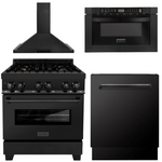 ZLINE Appliance Package - 30 In. Dual Fuel Range, Range Hood, Microwave and Dishwasher in Black Stainless Steel, 4KP-RABRH30-MWDWV