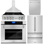ZLINE 5-Piece Appliance Package - 36 In. Gas Rangetop, Range Hood, Refrigerator, Dishwasher and Wall Oven in Stainless Steel, 5KPR-RTRH36-AWSDWV