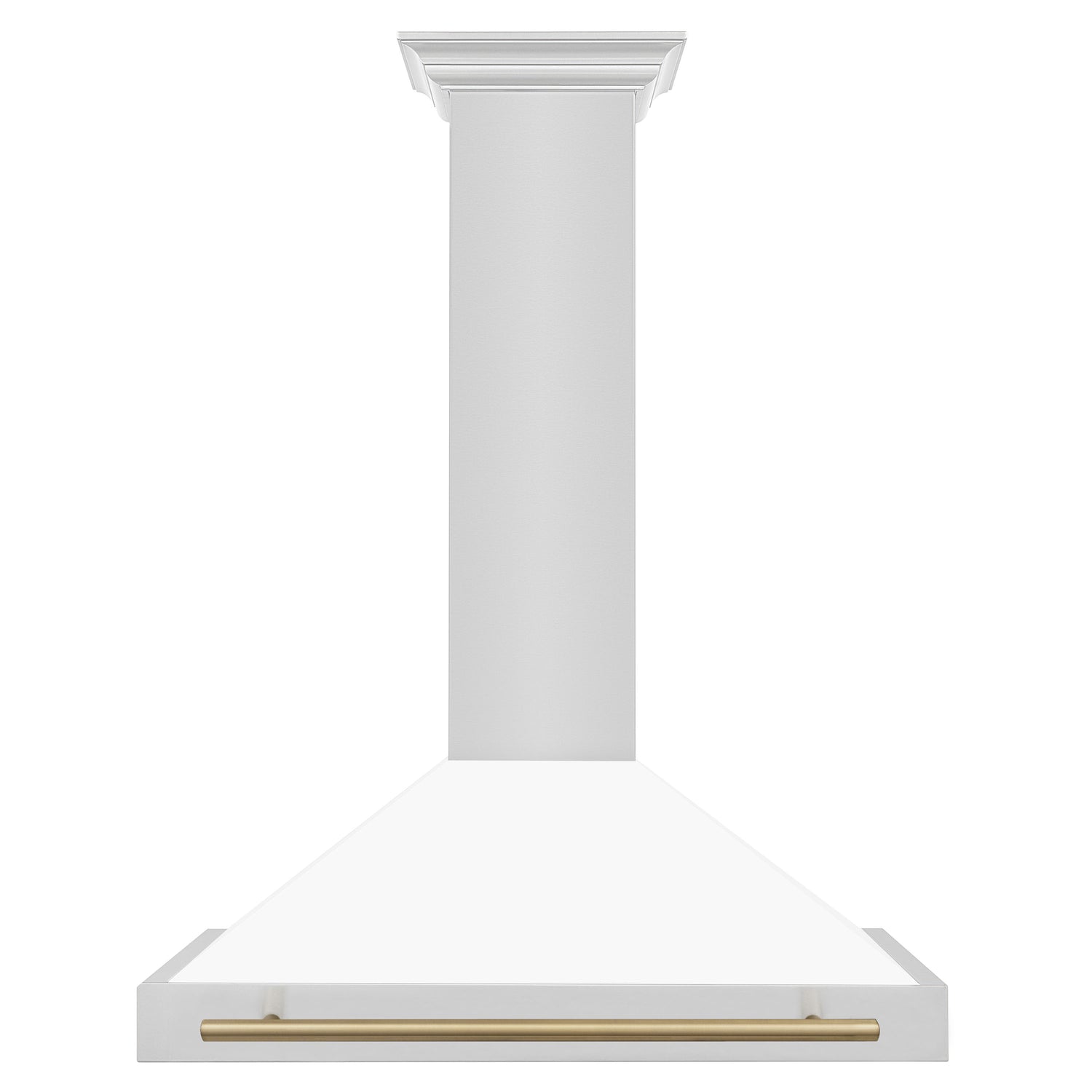 ZLINE 36 Inch Autograph Edition Stainless Steel Range Hood with White Matte Shell and Champagne Bronze Handle, KB4STZ-WM36-CB