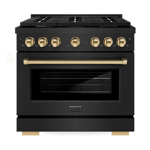 Vendor:ZLINEZLINE Autograph Package - 36" Dual Fuel Range, Range Hood, Refrigerator, Dishwasher in Black Stainless with Gold Accents