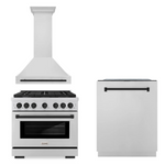 ZLINE Autograph Package - 36 In. Gas Range, Range Hood, Dishwasher in Stainless Steel with Matte Black Accents, 3AKP-RGRHDWM36-MB