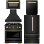 ZLINE Autograph Appliance Package - 30" Dual Fuel Range, Range Hood, 36" Refrigerator with Ice Maker, 24" Microwave Drawer and Dishwasher in Black Stainless Steel with Polished Gold Accents