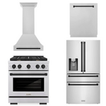 ZLINE Autograph Package - 30 In. Gas Range, Range Hood, Refrigerator, and Dishwasher in Stainless Steel with Matte Black Accents, 4AKPR-RGRHDWM30-MB