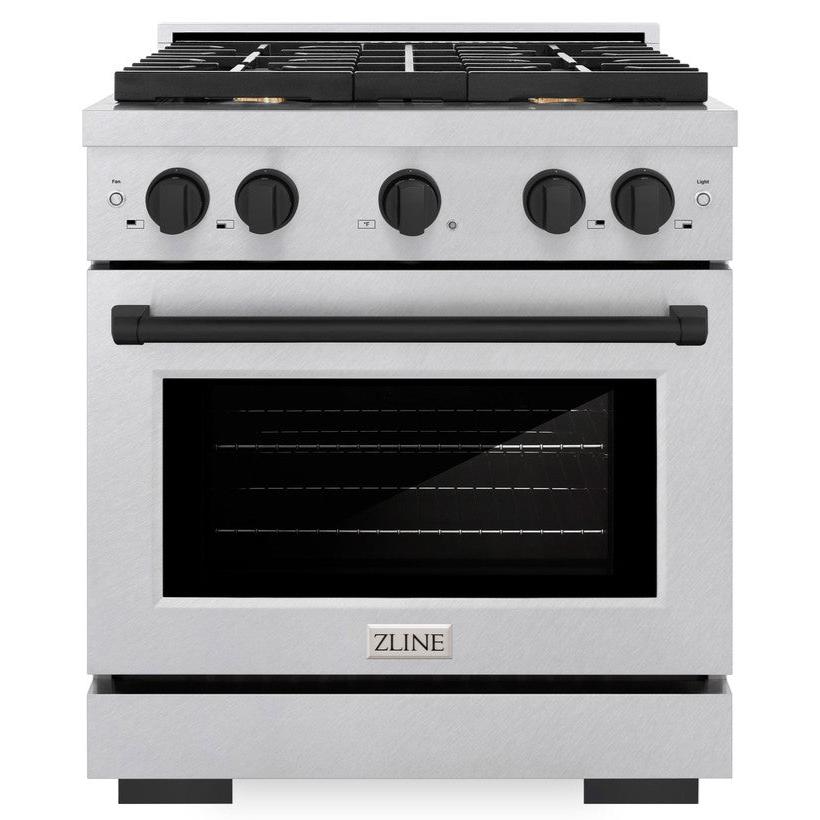 ZLINE Autograph 30" 4.2 cu. ft. Paramount Dual Fuel Range with 4 Burner Gas Cooktop and Electric Convection Oven in Satin Stainless Steel with Matte Black Accents, SDRSZ-30-MB