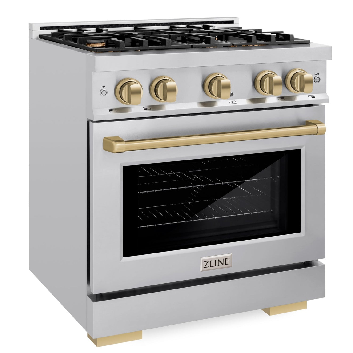 ZLINE Autograph 30" 4.2 cu. ft. Select Dual Fuel Range with 4 Burners in Stainless Steel with Champagne Bronze Accents, HDRZ-30-CB