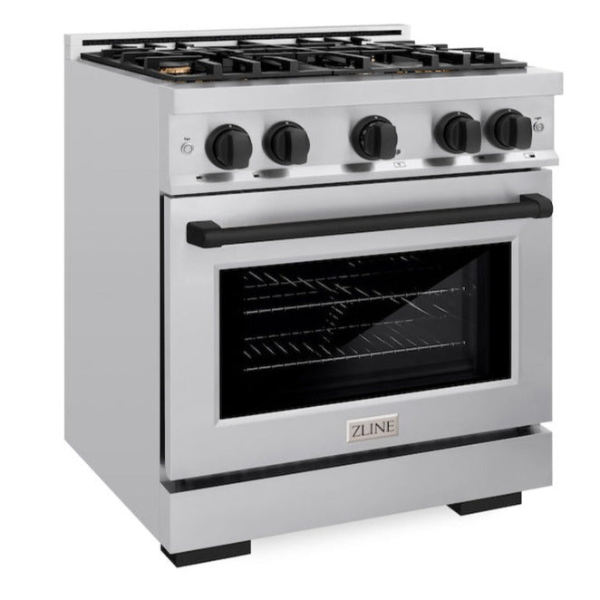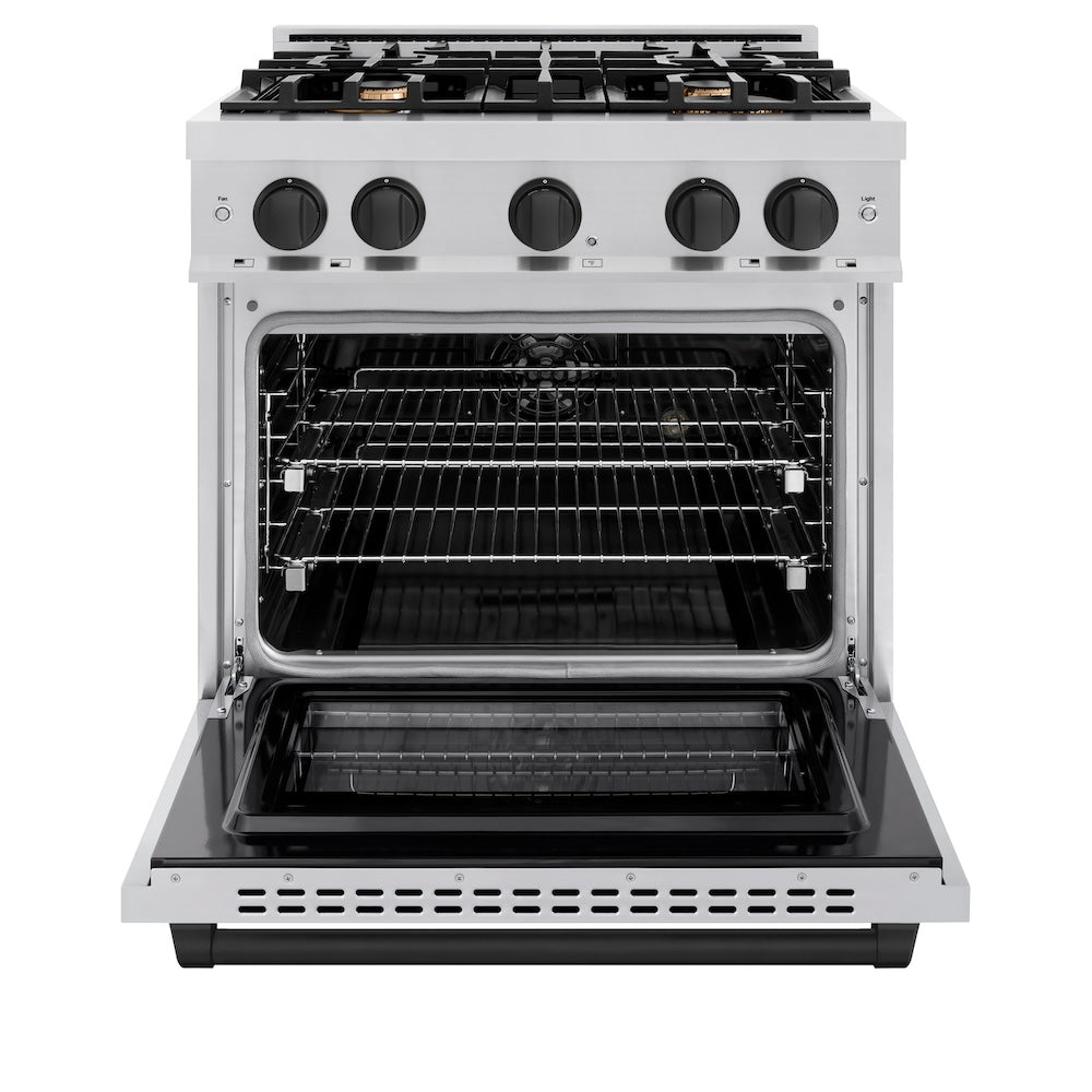 ZLINE Autograph 30" 4.2 cu. ft. Select Dual Fuel Range with 4 Burners in Stainless Steel with Matte Black Accents, HDRZ-30-MB