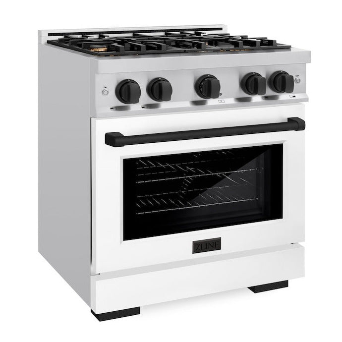 ZLINE Autograph 30" 4.2 cu. ft. Select Dual Fuel Range with 4 Burners in Stainless Steel with White Matte Door and Matte Black Accents, HDRZ-WM-30-MB