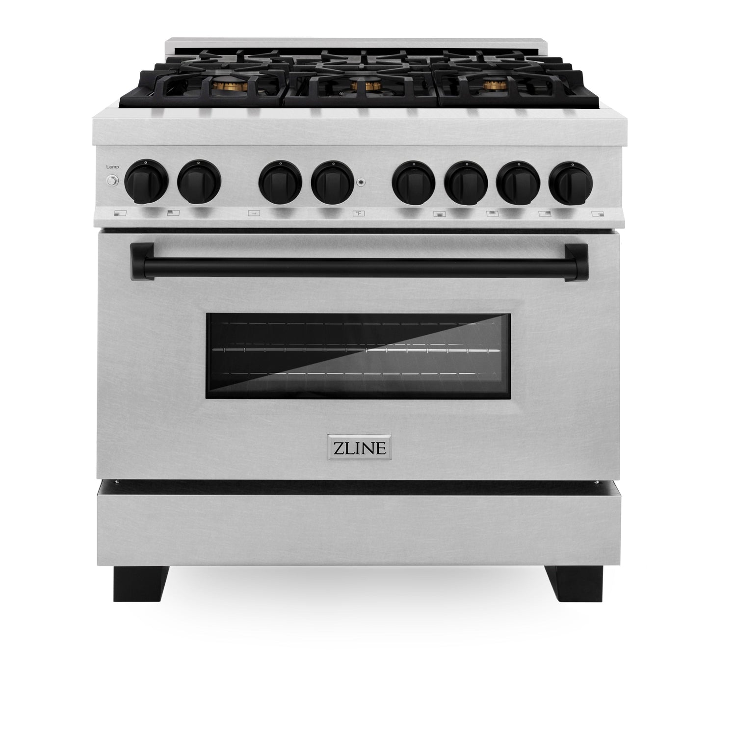 Luxury isn’t meant to be left desired—it’s meant to be attainable. The ZLINE Autograph Edition 36 in. 4.6 cu. ft. Legacy Dual Fuel Range with 6 Burner Gas Cooktop and Electric Convection Oven in Satin Stainless Steel and Matte Black Accents (RASZ-SN-36-MB) pairs a powerful gas cooktop with 6 Italian-crafted burners, an electric convection oven with a Landscape oven door window design, and elegant matte black knobs and handle. With innovative features designed to enhance your kitchen’s capability, ZLINE Legacy Dual Fuel Ranges provide a professional culinary experience by pairing unmatched performance with timeless style.