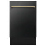ZLINE 18" Autograph Edition Dishwasher in Black Stainless Steel with Gold Handle, DWVZ-BS-18-G