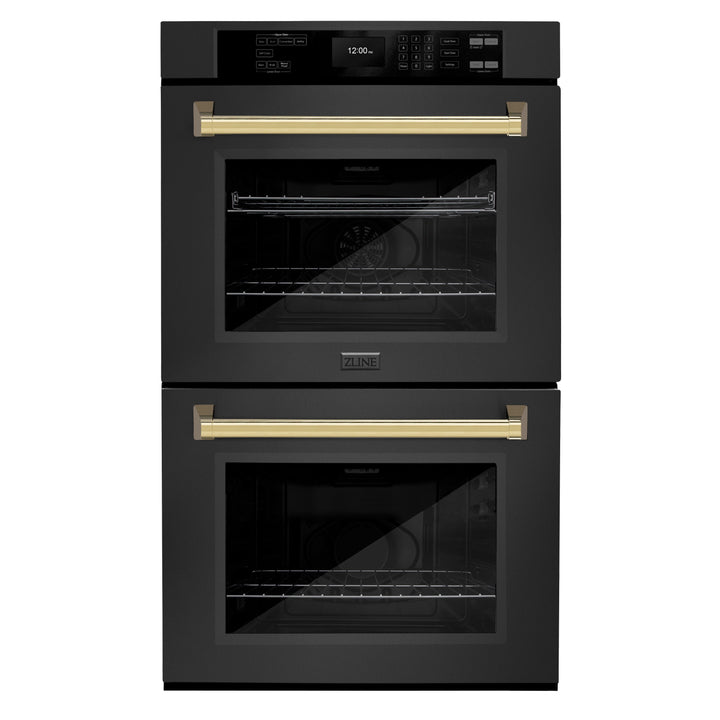ZLINE 30" Autograph Double Wall Oven with Air Fry and Self-Clean in Black and Gold Handle, WADBZ-30-G