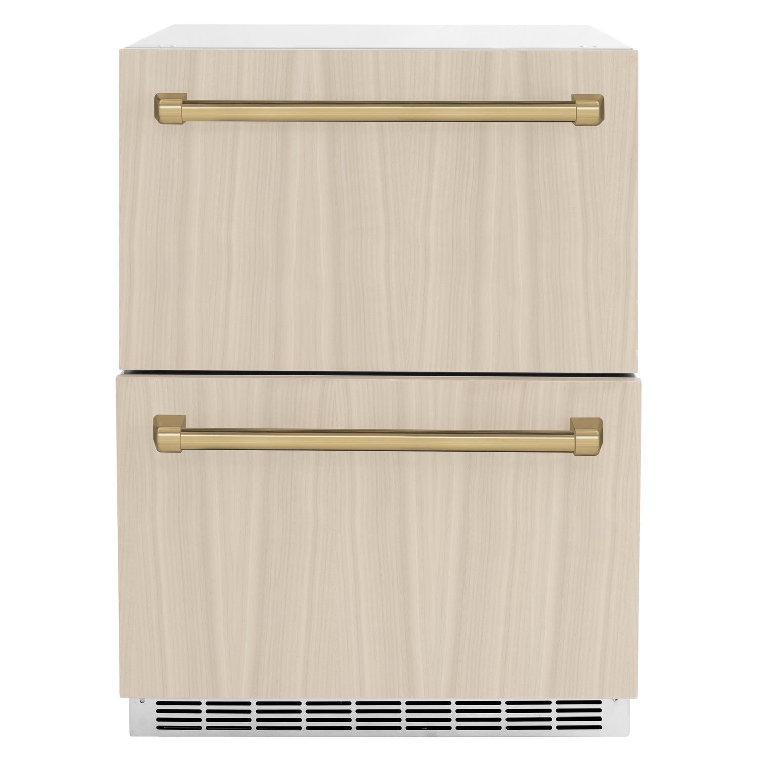 ZLINE Autograph 24" Touchstone 168 Can Outdoor-Rated Refrigerator Drawer with Panel Ready Doors and 2 Champagne Bronze Handles, RDSPOZ-24-CB