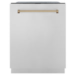 ZLINE Autograph Edition 24 In. Tall Dishwasher, Touch Control, in Stainless Steel with Champagne Bronze Handle, DWMTZ-304-24-CB