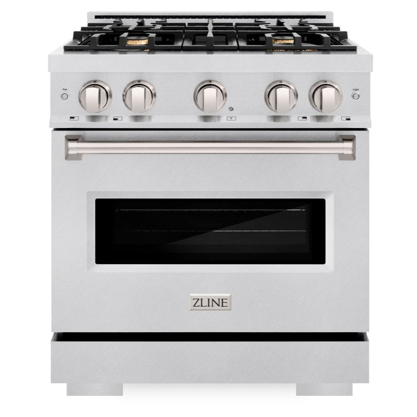 ZLINE 30" 4.2 cu. ft. Classic Dual Fuel Range with Gas Cooktop and Electric Convection Oven in Satin Stainless Steel with 4 Brass Burners, CDRS-BR-30