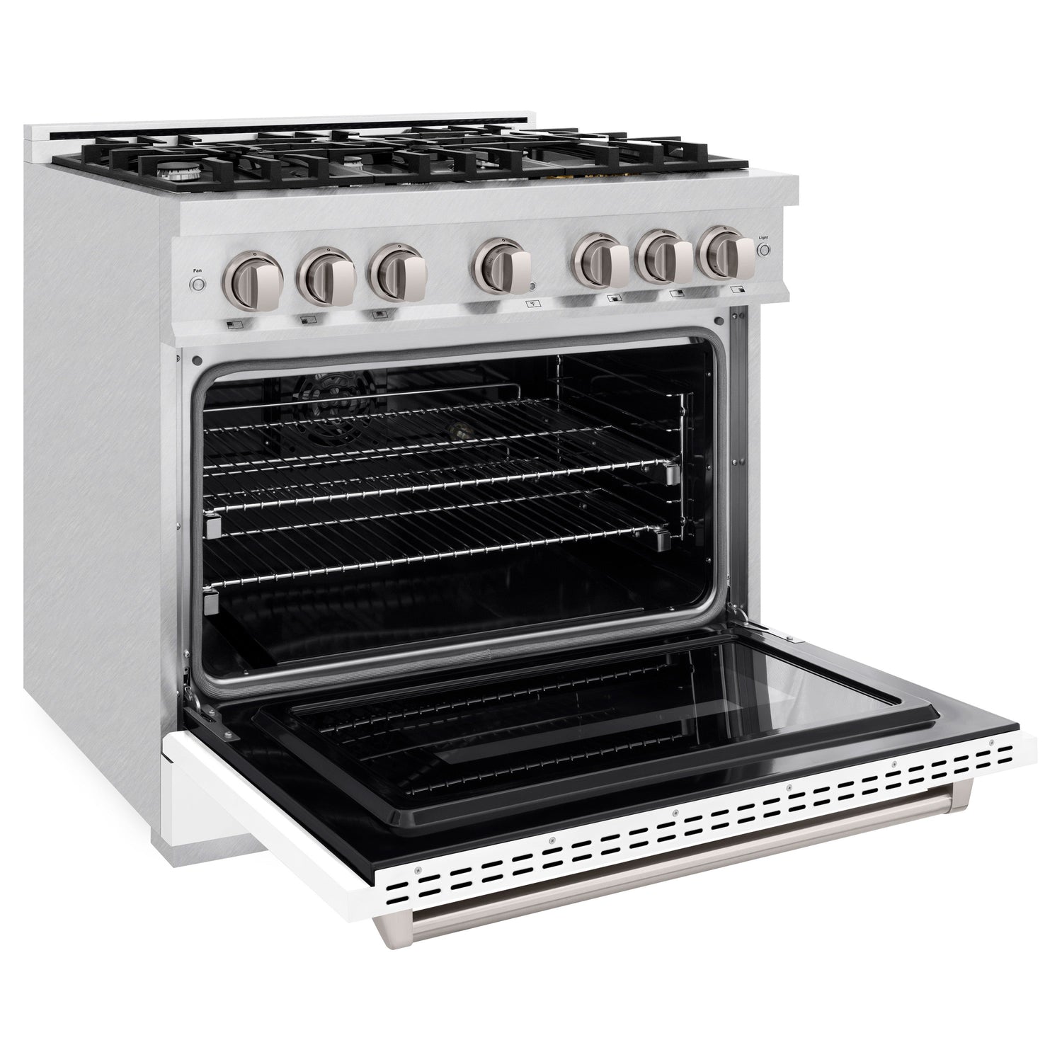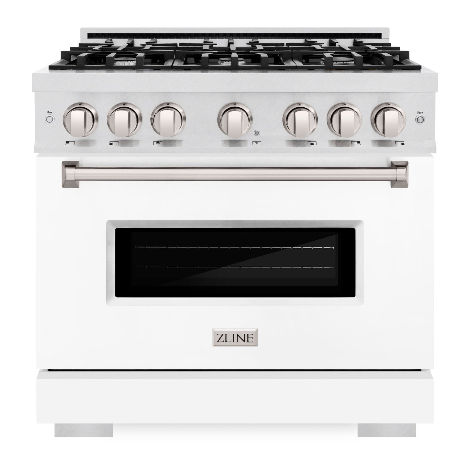 ZLINE 36" 5.2 cu. ft. Classic Dual Fuel Range with 6 Burner Gas Cooktop and Electric Convection Oven in Satin Stainless Steel with White Matte Door, CDRS-WM-36