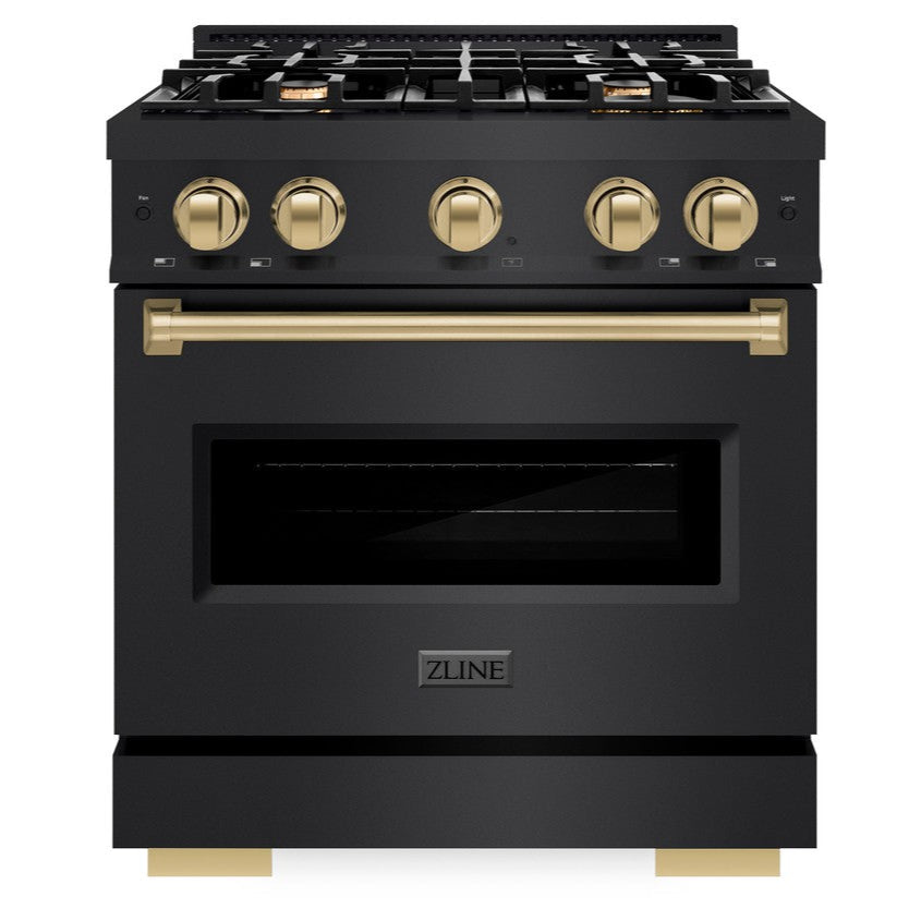 ZLINE Autograph 30" 4.2 cu. ft. Classic Dual Fuel Range with 4 Burners in Black Stainless Steel with Champagne Bronze Accents, CDRBZ-30-CB