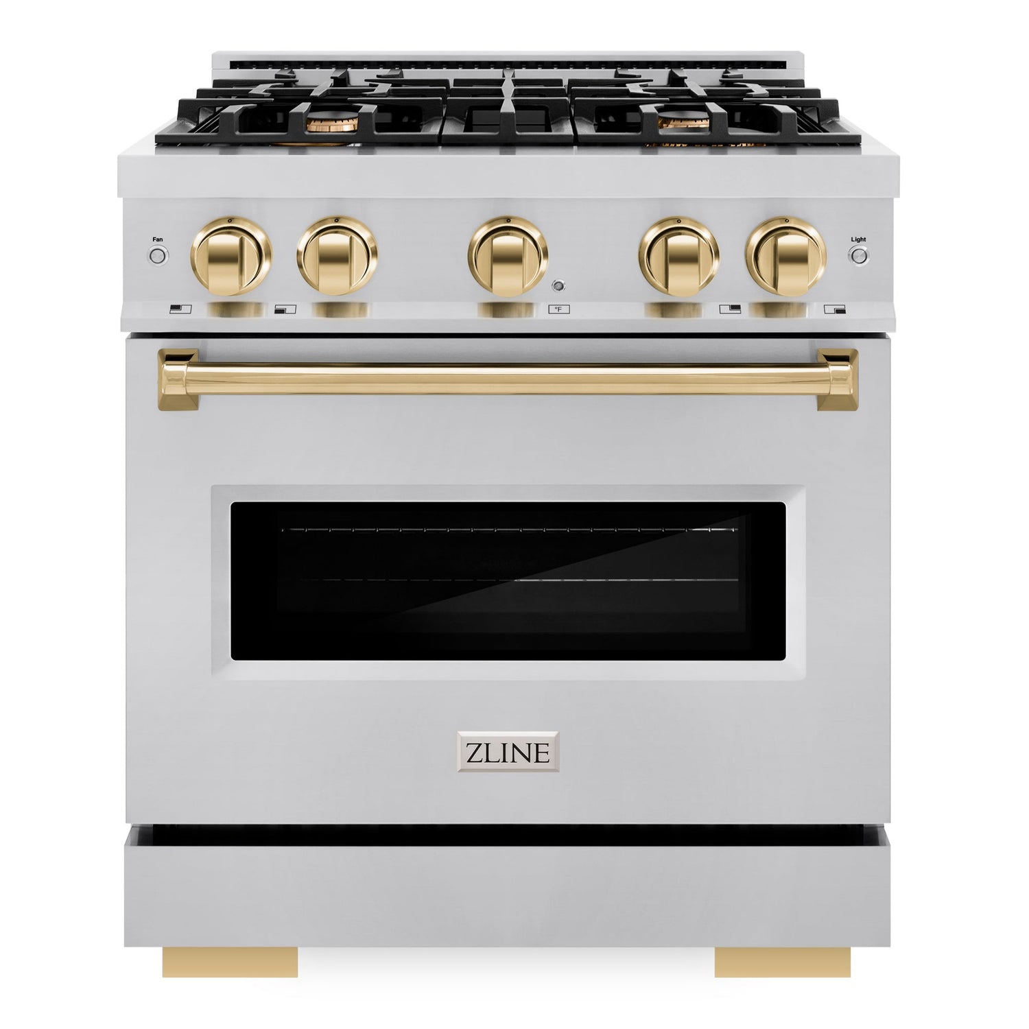 ZLINE Autograph 30" 4.2 cu. ft. Classic Dual Fuel Range with 4 Burners in Stainless Steel with Polished Gold Accents, CDRZ-30-G