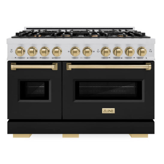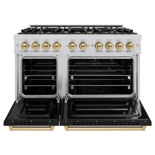 ZLINE Autograph 48" 6.7 cu. ft. Classic Double Oven Dual Fuel Range with 8 Burners in Stainless Steel with Black Matte Doors and Champagne Bronze Accents, CDRZ-BLM-48-CB
