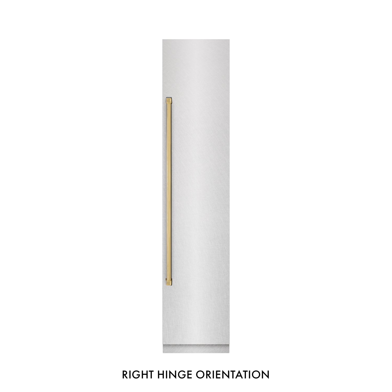 ZLINE Autograph 18" 8.6 cu. ft. Right Hinge Column Freezer in Satin Stainless Steel with Graphite Gray Interior and Polished Gold Accents, RCFVRZ-SN-18-G