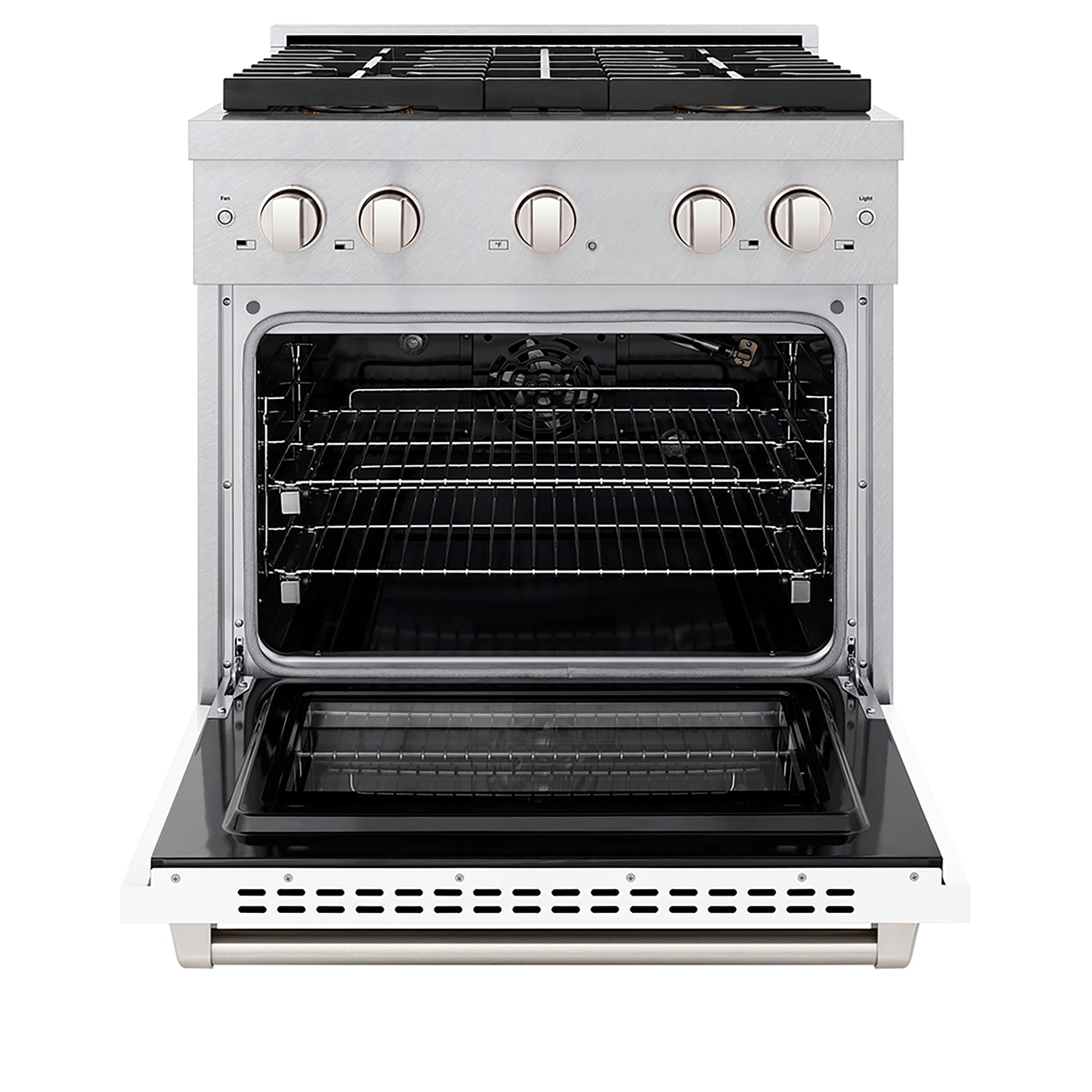 ZLINE 30" 4.2 cu. ft. Paramount Gas Range with 4 Burner DuoPro™ Cooktop and Convection Gas Oven in Satin Stainless Steel with White Matte Door, PSGRS-WM-30