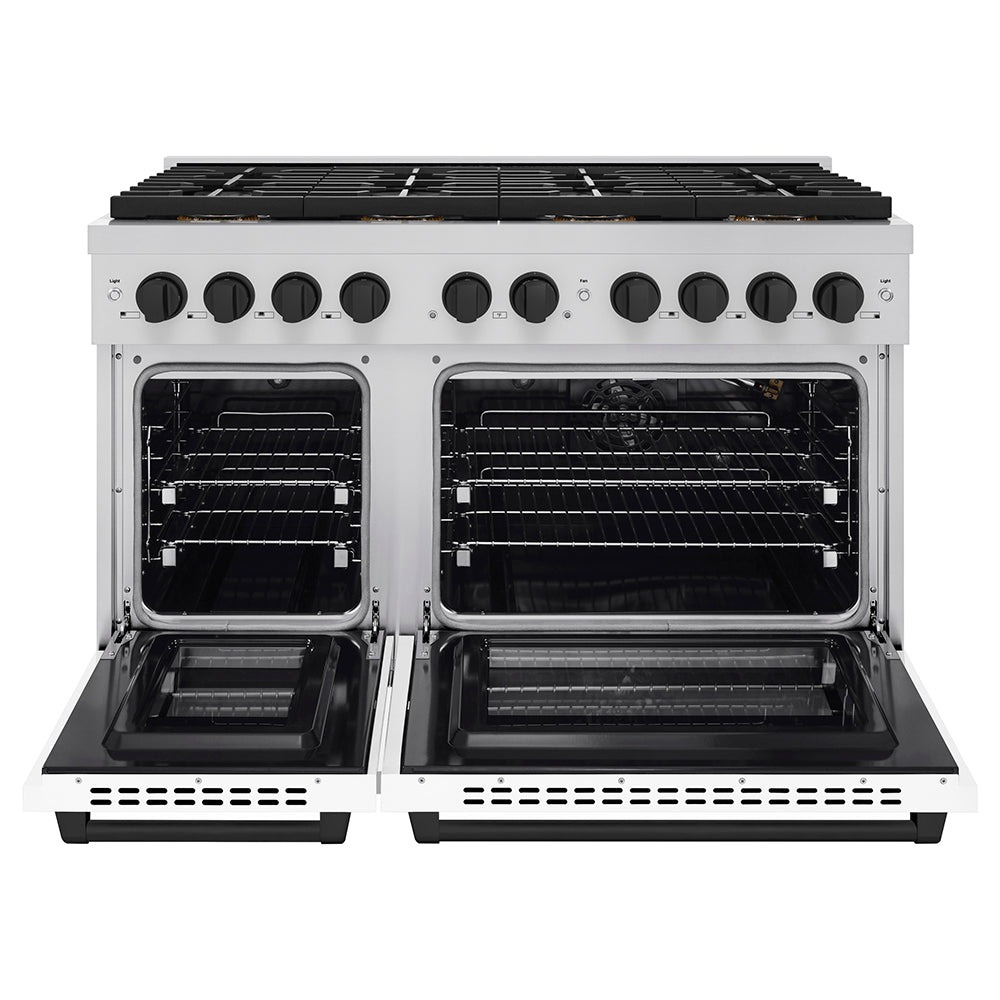 ZLINE Autograph 48" 6.7 cu. ft. Paramount Gas Range with 8 Burner DuoPro™ Cooktop and Dual Ovens with White Matte Doors and Matte Black Accents, PSGRZ-WM-48-MB