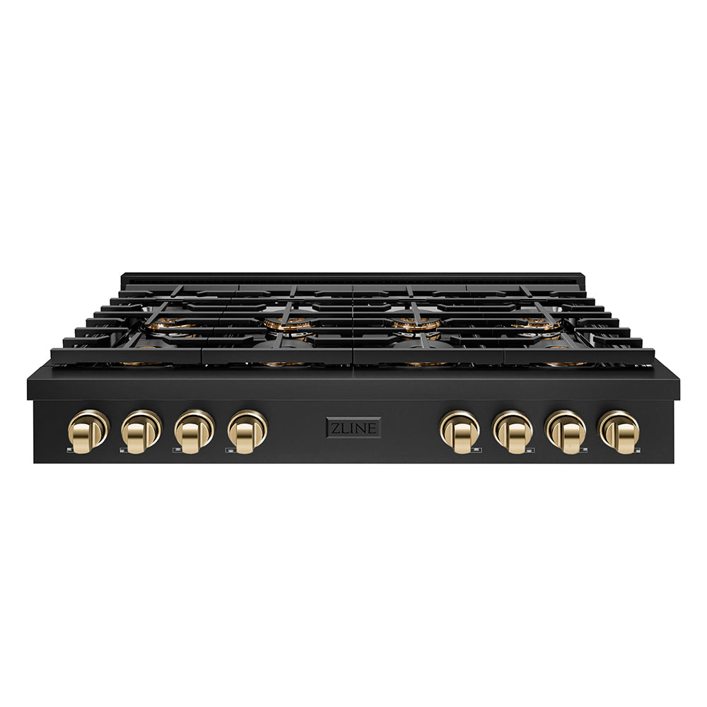 ZLINE Autograph 48" Paramount Gas Rangetop with 8 Burner DuoPro™ Cooktop in Black Stainless Steel and Polished Gold Accents, PSRTBZ-48-G