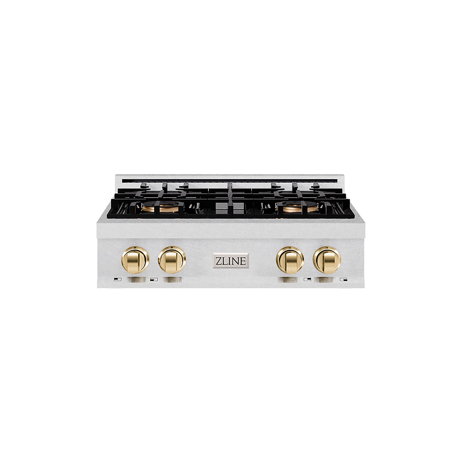 ZLINE Autograph Edition 30" Classic Gas Rangetop with 4 Burner DuoPro™ Cooktop in Satin Stainless Steel and Polished Gold Accents, PCRTSZ-30-G