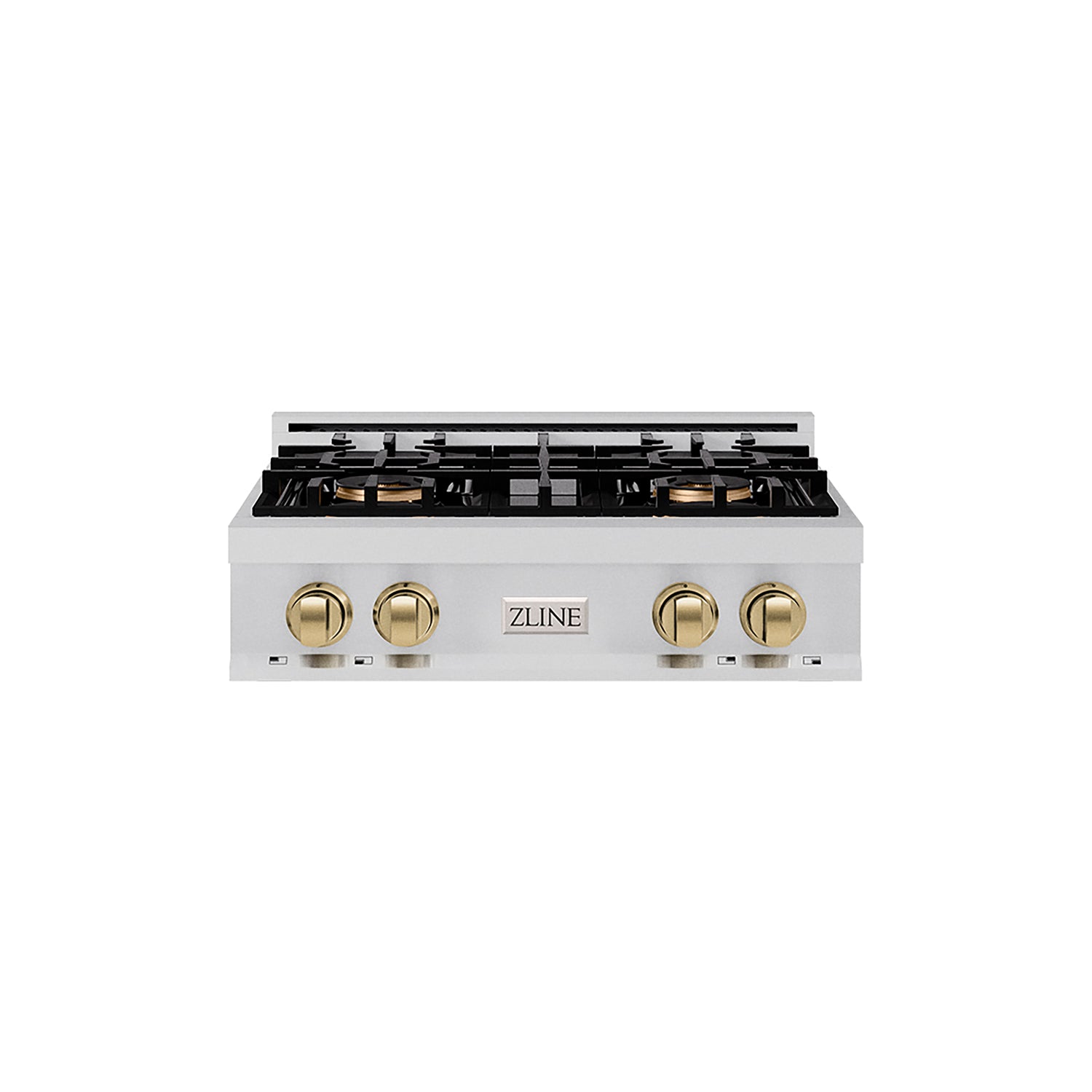ZLINE Autograph Edition 30" Classic Gas Rangetop with 4 Burner DuoPro™ Cooktop in Stainless Steel and Champagne Bronze Accents, PCRTZ-30-CB