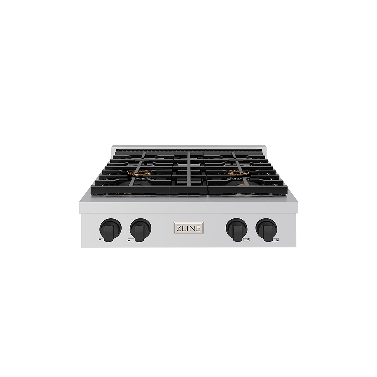 ZLINE Autograph Edition 30" Paramount Gas Rangetop with 4 Burner DuoPro™ Cooktop in Stainless Steel and Matte Black Accents, PSRTZ-30-MB