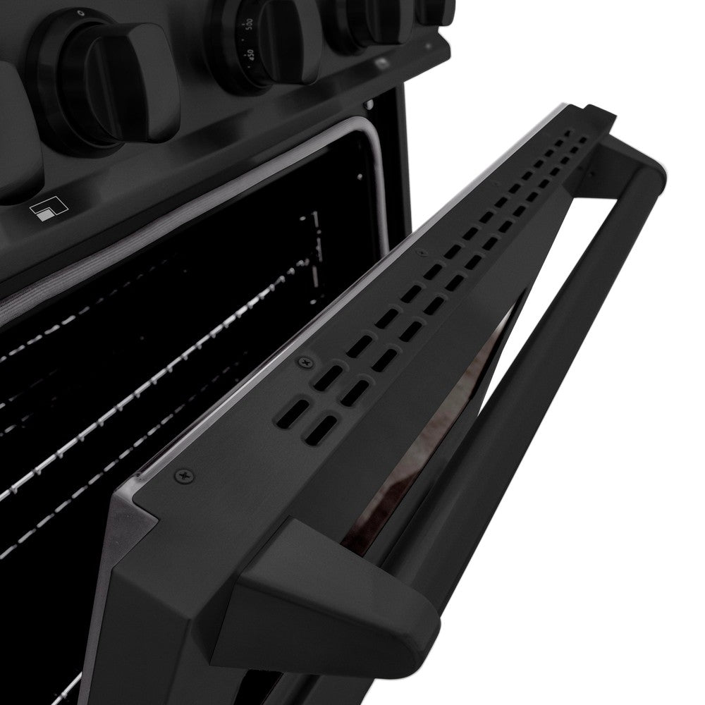 Luxury isn't meant to be desired - it's meant to be attainable. The ZLINE 30 in. 4.2 cu. ft. Classic Gas Range with Convection Gas Oven in Black Stainless Steel with 4 Brass Burners (CGRB-BR-30) combines the elegance of a hand-finished porcelain gas cooktop with 4 Italian-made brass auto-reignition burners, a gas convection oven with an energy-efficient cooling fan to ensure quiet operation, and a Landscape oven door window design allowing you to master every meal. With a modern, timeless style and refined functionality, ZLINE Classic Gas Ranges are masterfully crafted to deliver an elevated culinary experience.