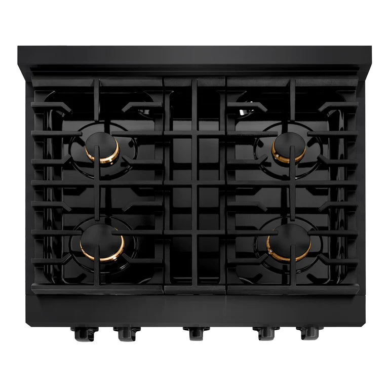ZLINE Paramount 30" 4.2 cu. ft. Gas Range with Convection Oven and 4 Brass Burners in Black Stainless Steel, SGRB-BR-30