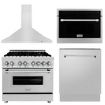 ZLINE Appliance Package - 36 in. Dual Fuel Range, Range Hood, Microwave Oven, Dishwasher, 4KP-RARH36-MODWV