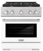 ZLINE 30" 4.2 cu. ft. Paramount Dual Fuel Range with 4 Burner Gas Cooktop and Electric Convection Oven in Satin Stainless Steel with White Matte Door, SDRS-WM-30