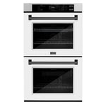 ZLINE 30" Autograph Professional True Convection Double Wall Oven with Air Fry and Self Clean in Satin Stainless Steel with White Matte Doors and Matte Black Handles, WADSZ-WM-30-MB