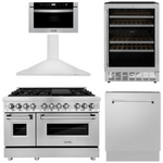 ZLINE Appliance Package - 48" Dual Fuel Range, Range Hood, Microwave Drawer, Dishwasher and Wine Cooler, 5KP-RARH48-MWDWV-RWV