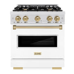 ZLINE Autograph 30" 4.2 cu. ft. Classic Gas Range with 4 Burner Cooktop and Convection Gas Oven in Satin Stainless Steel with White Matte Door and Champagne Bronze Accents, CGRSZ-WM-30-CB
