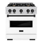 ZLINE Autograph 30" 4.2 cu. ft. Classic Gas Range with 4 Burners in Stainless Steel with White Matte Door and Matte Black Accents, CGRZ-WM-30-MB