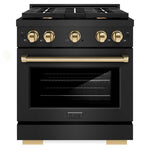 ZLINE Autograph 30" 4.2 cu. ft. Paramount Dual Fuel Range with 4 Burners in Black Stainless Steel with Polished Gold Accents, SDRBZ-30-G