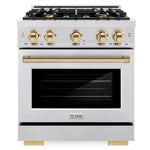 ZLINE Autograph 30" 4.2 cu. ft. Select Dual Fuel Range with 4 Burner Gas Cooktop and Electric Convection Oven in Satin Stainless Steel with Polished Gold Accents, HDRSZ-30-G
