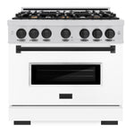 ZLINE Autograph 36" 5.2 cu. ft. Classic Gas Range with 6 Burners in Stainless Steel with White Matte Door and Matte Black Accents, CGRZ-WM-36-MB
