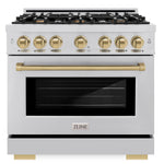 ZLINE Autograph 36" 5.2 cu. ft. Select Gas Range with 6 Burners in Stainless Steel and Champagne Bronze Accents, HGRZ-36-CB