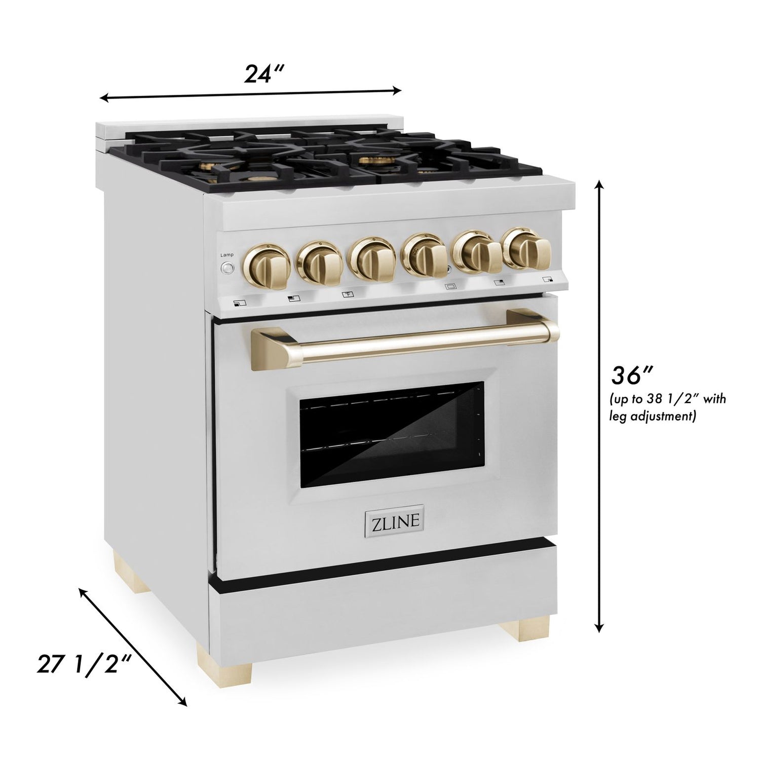 • Adjustable Oven Height: Easy adjustable legs allow you to adjust the total range height anywhere from 36 inches to 38.5 inches.