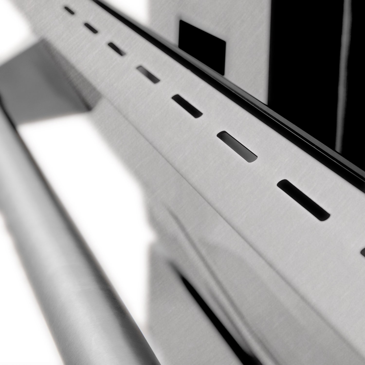 • Satin Stainless Steel: ZLINE's Satin Stainless Steel finish is a circular, non-directional, professionally styled stainless steel that is rust, scratch, and fingerprint-resistant