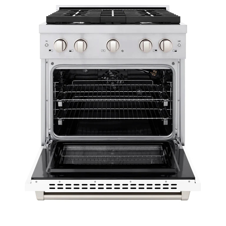 ZLINE Paramount 30" 4.2 cu. ft. Gas Range with Convection Oven in Stainless Steel with White Matte Door, SGR-WM-30