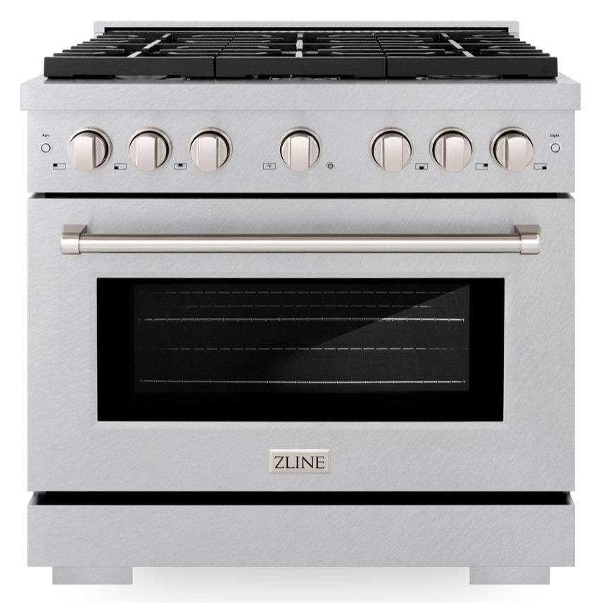 ZLINE 36" 5.2 cu. ft. Paramount Dual Fuel Range with 6 Burner Gas Cooktop and Electric Convection Oven in Satin Stainless Steel, SDRS-36