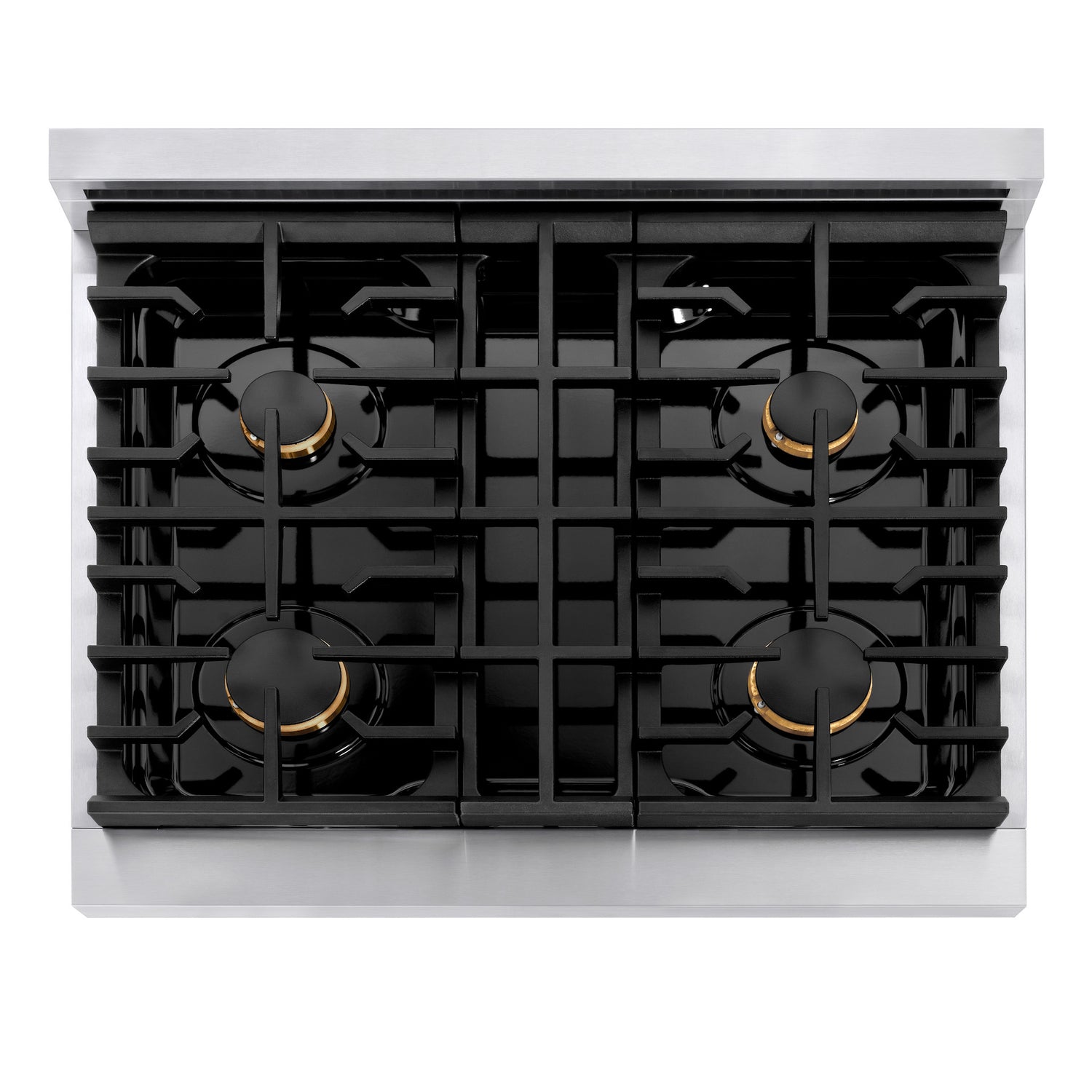 ZLINE Autograph 30" 4.2 cu. ft. Paramount Gas Range with Convection Gas Oven in Stainless Steel and Gold Accents, SGRZ-30-G