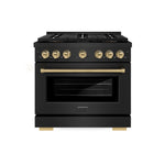 ZLINE Autograph 36" 5.2 cu. ft. Paramount Gas Range with 6 Burner DuoPro™ Cooktop and Convection Gas Oven in Black Stainless Steel and Champagne Bronze Accents, PSGRBZ-36-CB