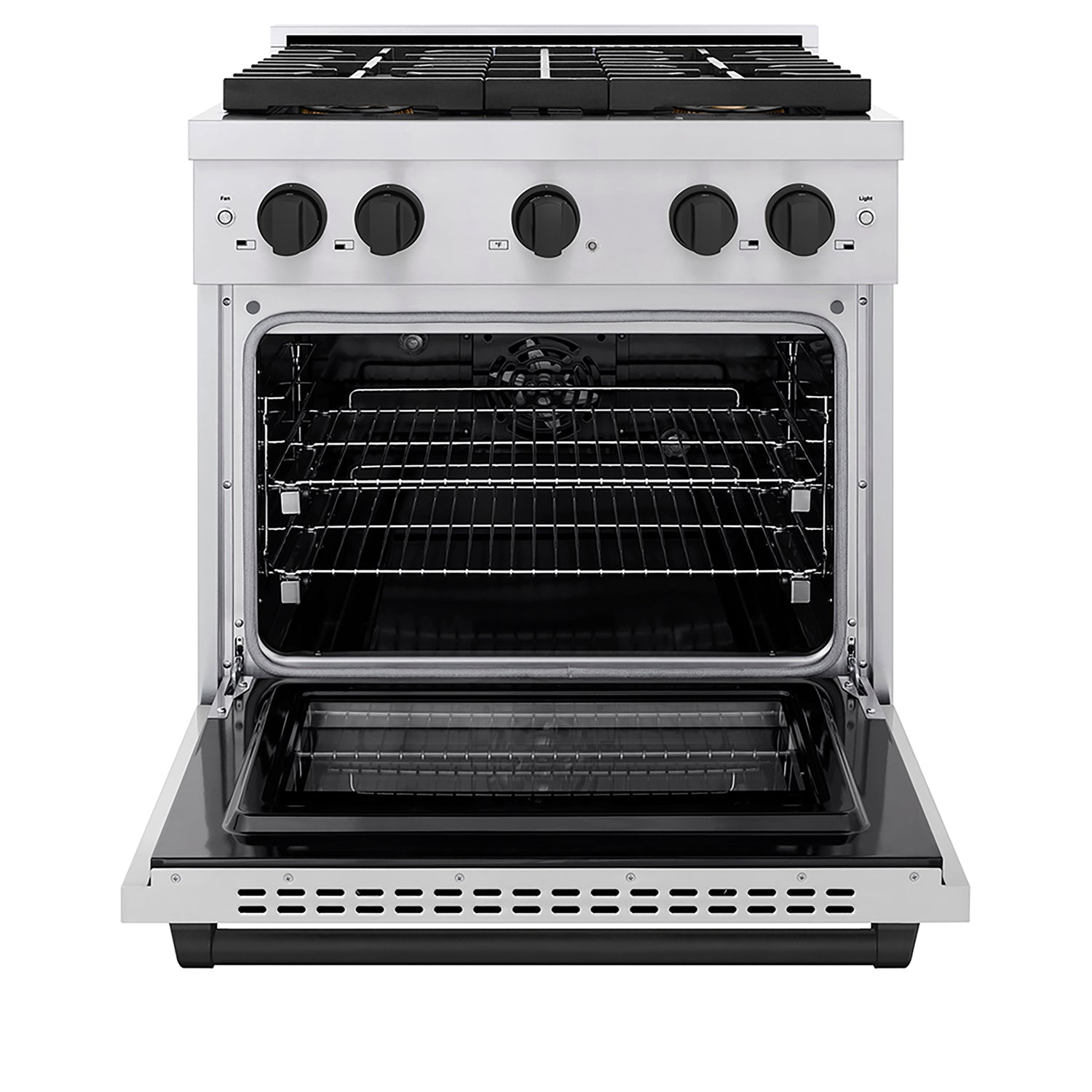 ZLINE Autograph Edition 30" 4.2 cu. ft. Paramount Dual Fuel Range with 4 Burner DuoPro™ Cooktop and Electric Convection Oven in Stainless Steel with Matte Black Accents, PSDRZ-30-MB
