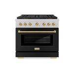 ZLINE Autograph Edition 36" 5.2 cu. ft. Paramount Gas Range with 6 Burner DuoPro™ Cooktop and Convection Gas Oven in Satin Stainless Steel with Black Matte Door and Champagne Bronze Accents, PSGRSZ-BLM36-CB