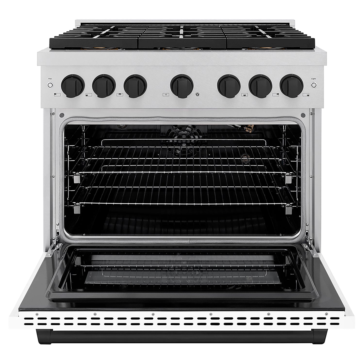 ZLINE Autograph Edition 36" 5.2 cu. ft. Paramount Gas Range with 6 Burner DuoPro™ Cooktop and Convection Gas Oven in Satin Stainless Steel with White Matte Door and Matte Black Accents, PSGRSZ-WM-36-MB